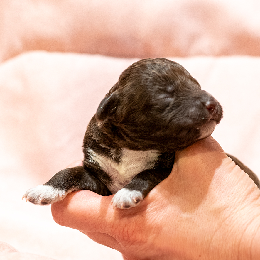 Flocky lebt in Italien und wurde in der bekannten Zucht "Il Granaio dei Malatesta" geboren.
